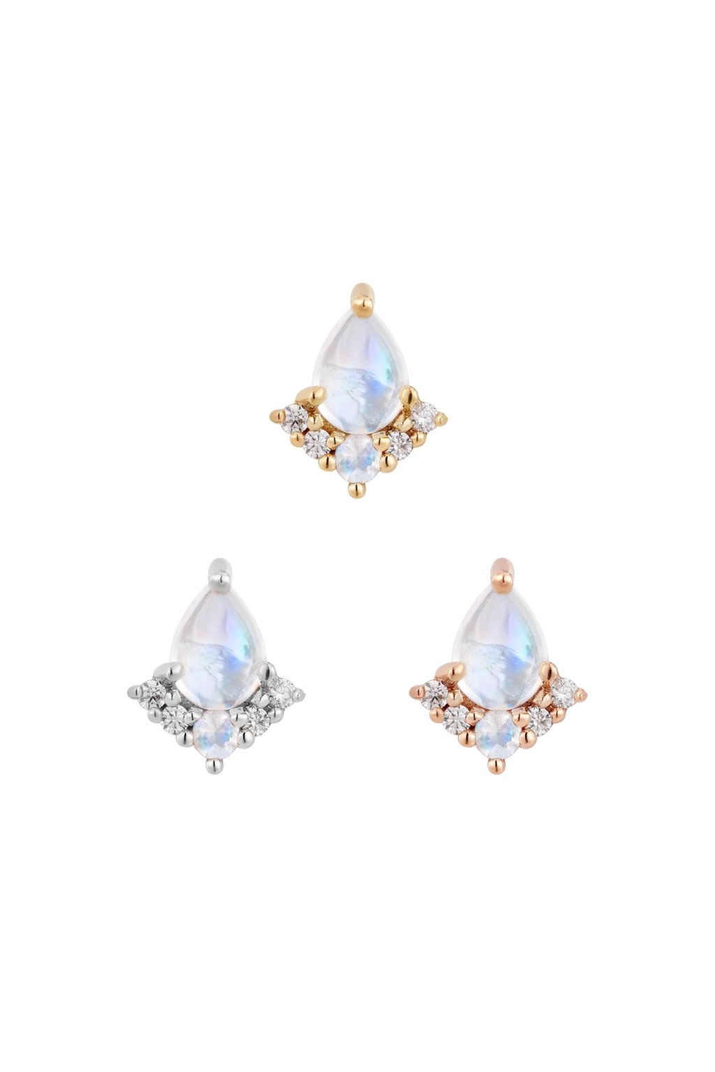 | Velikost kamene: | (1) 3,5 x 3 mm a (1) 1,5mm duhový Měsíční kámen + (4) 0,9 mm CZ zirkon |