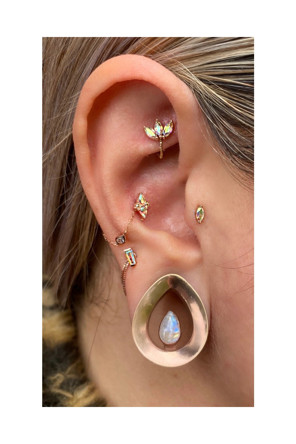 Bezzávitová koncovka piercingu Zuri zo 14 kt zlata 585/1000 s Mercury Mist Topazem
