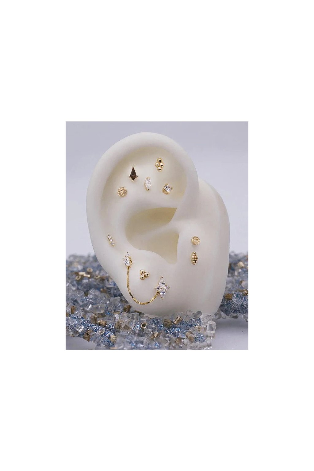 Bezzávitová koncovka piercingu Zuri zo 14 kt zlata 585/1000 so zirkónmi