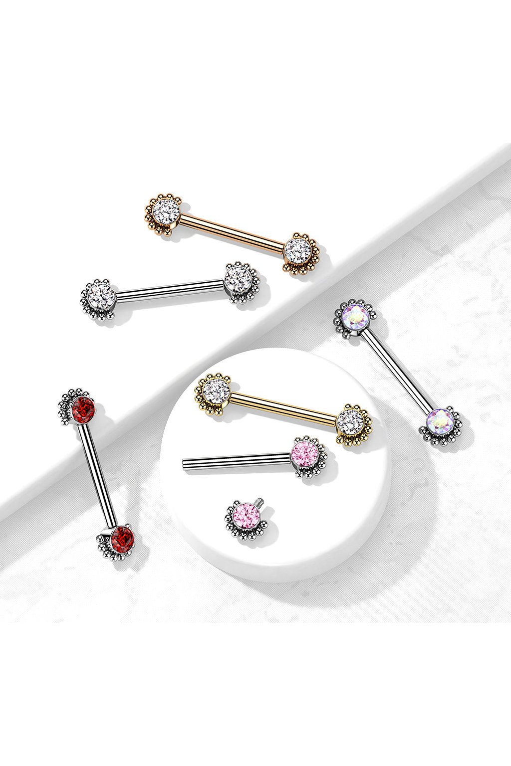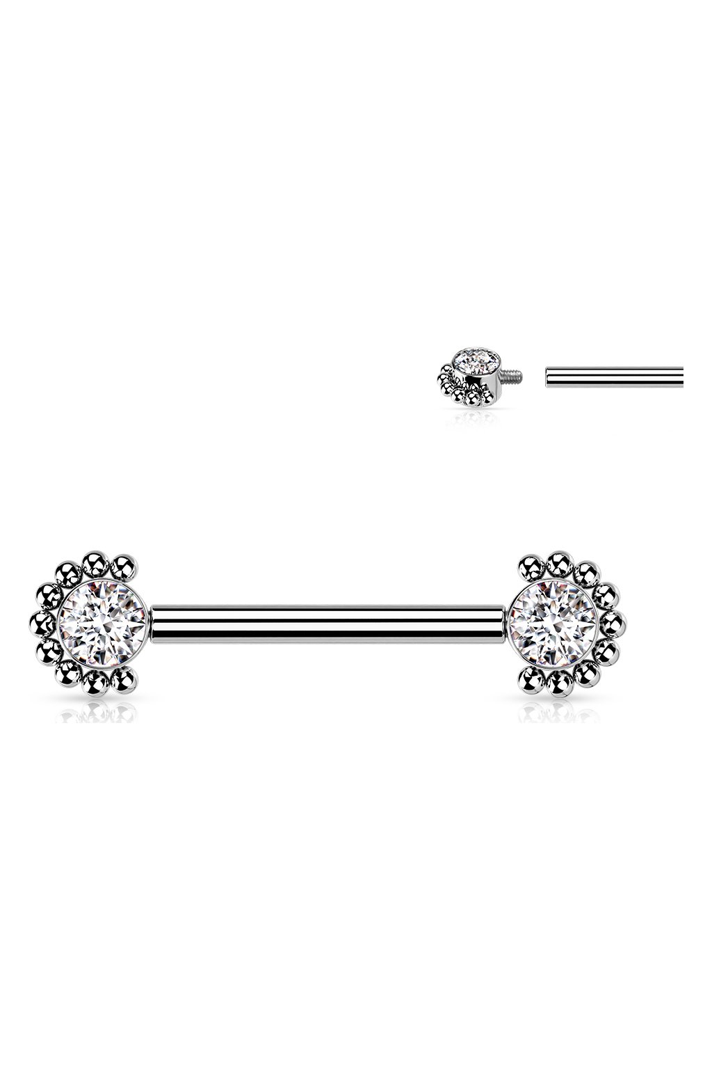 Titánová činka do bradavky s vnútorným závitom a guličkovým zdobením Beatrice