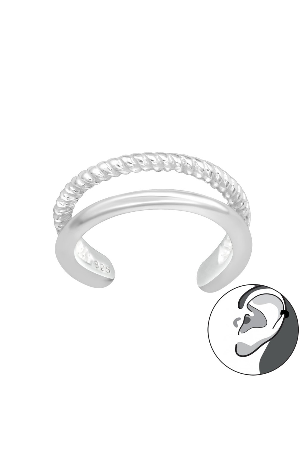 Strieborná plochá záušnica TWISTED
