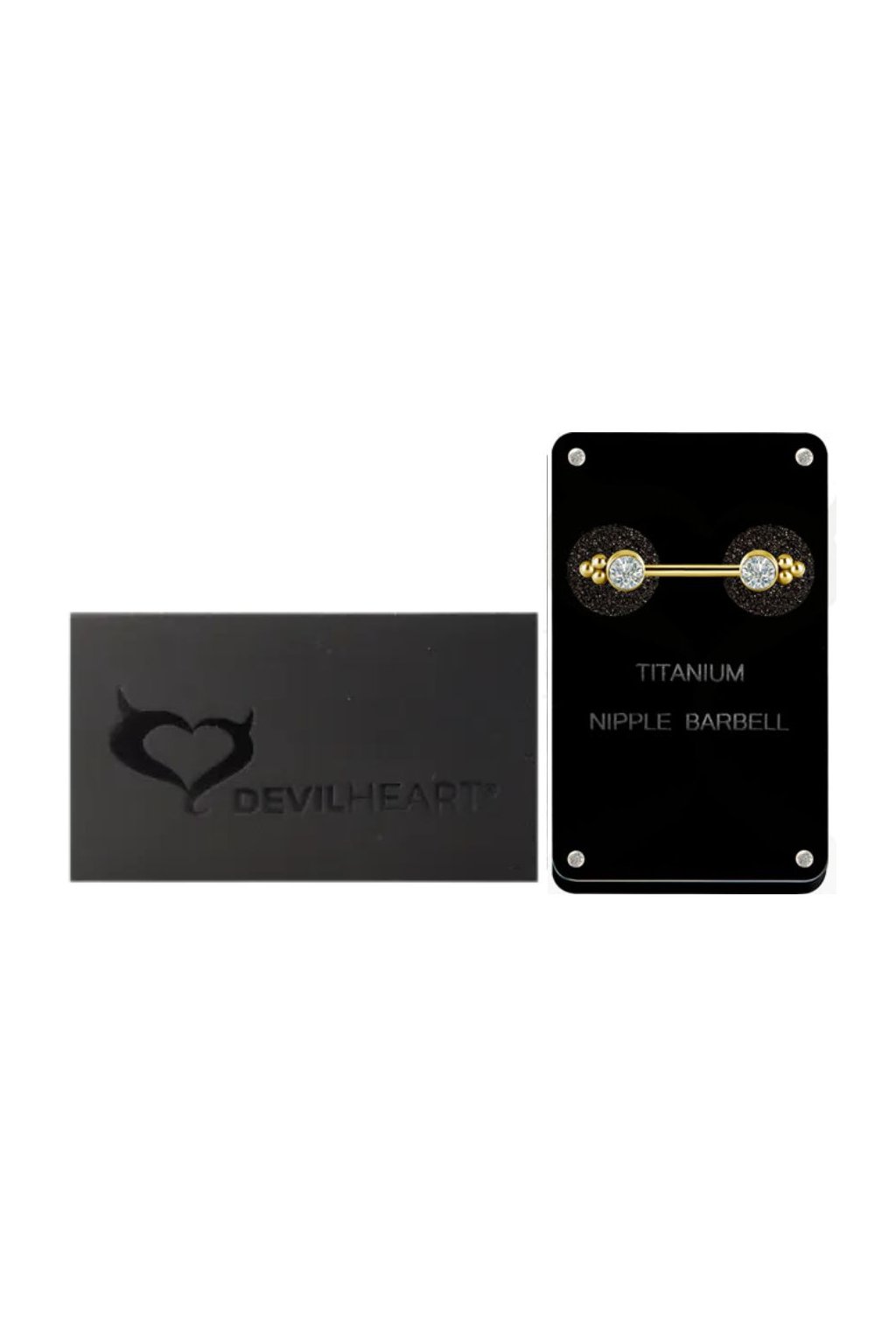 Titánová činka do bradaviek s vnútorným závitom a čírymi prémiovými zirkónmi #02 - zlatá