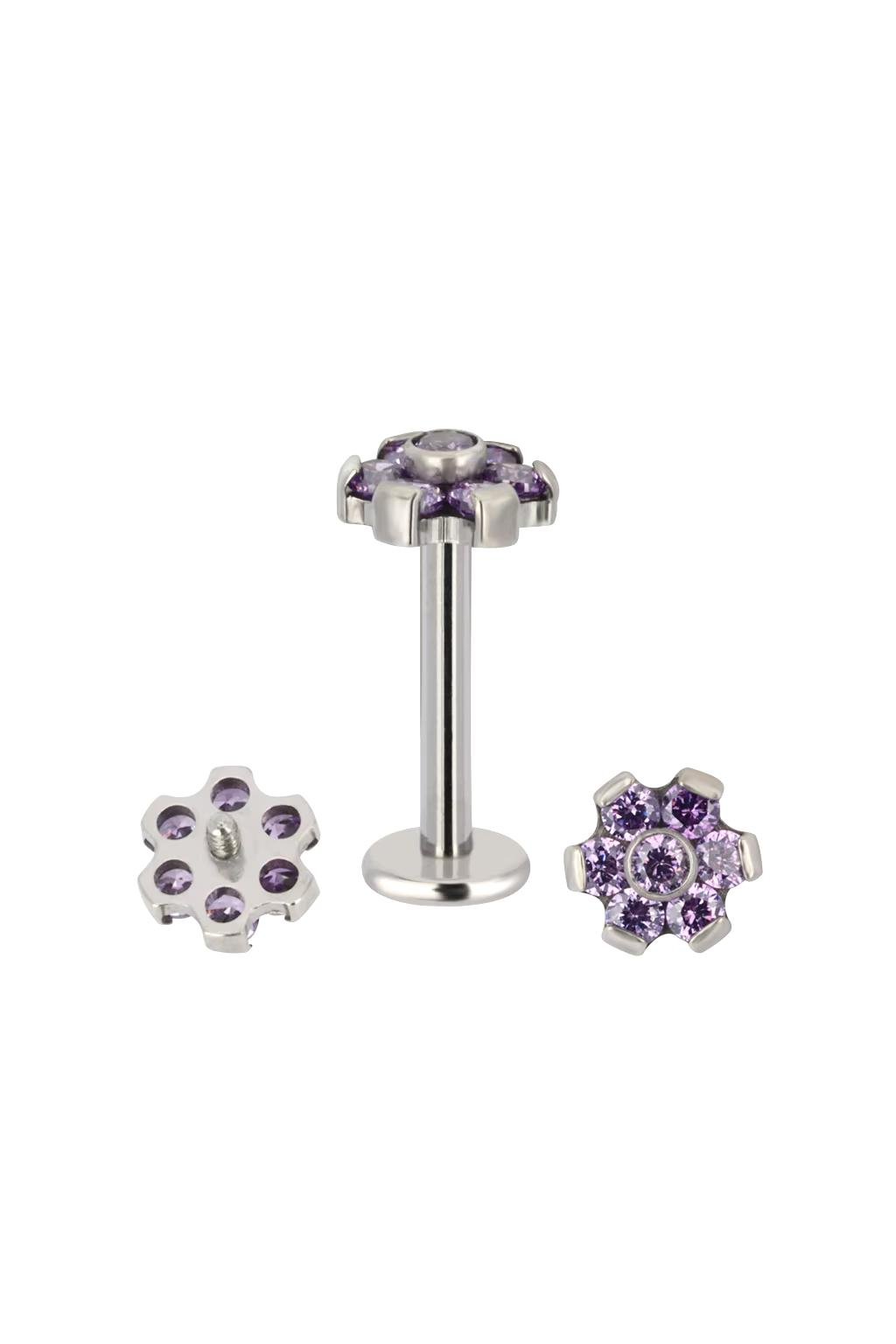 Titánová labreta s vnútorným závitom a kvetinkou so zirkónmi Erlania
