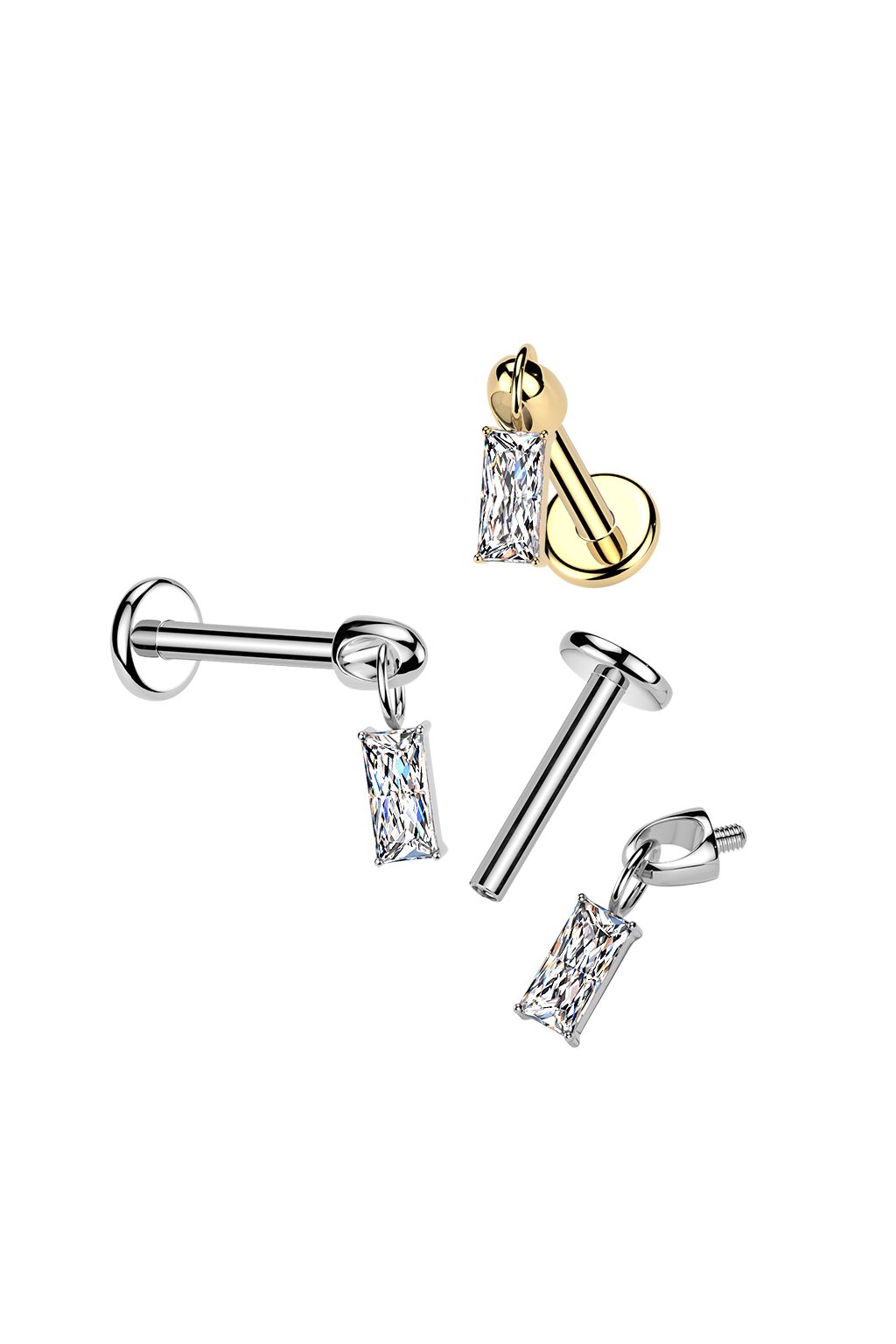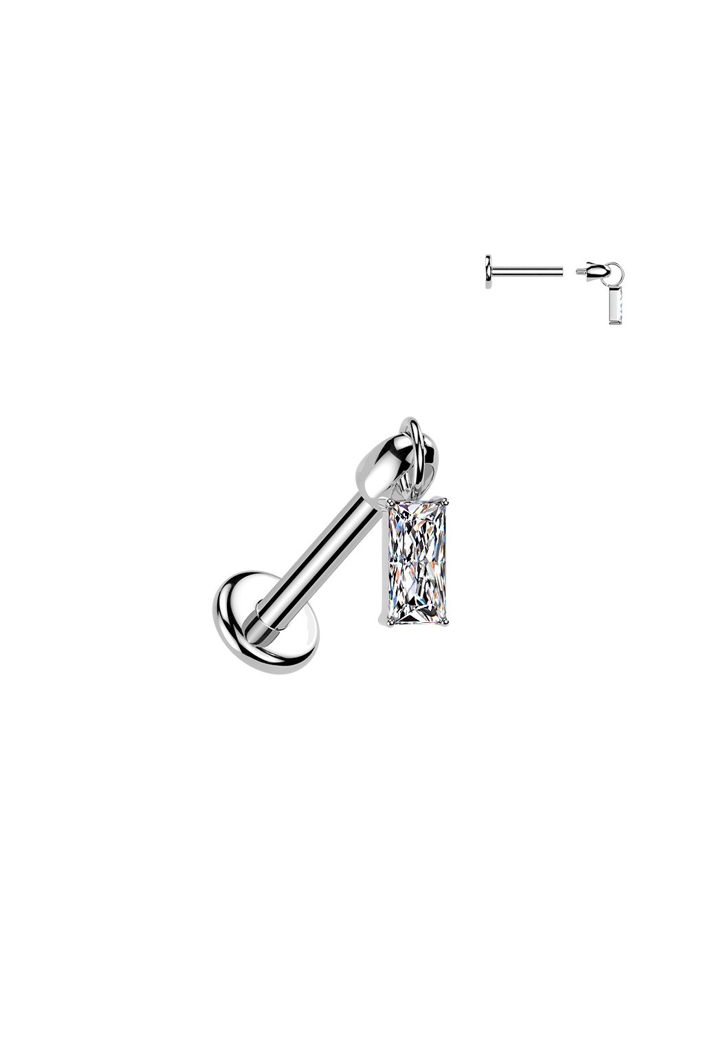 Titánová labreta s vnútorným závitom Zircon Baguette