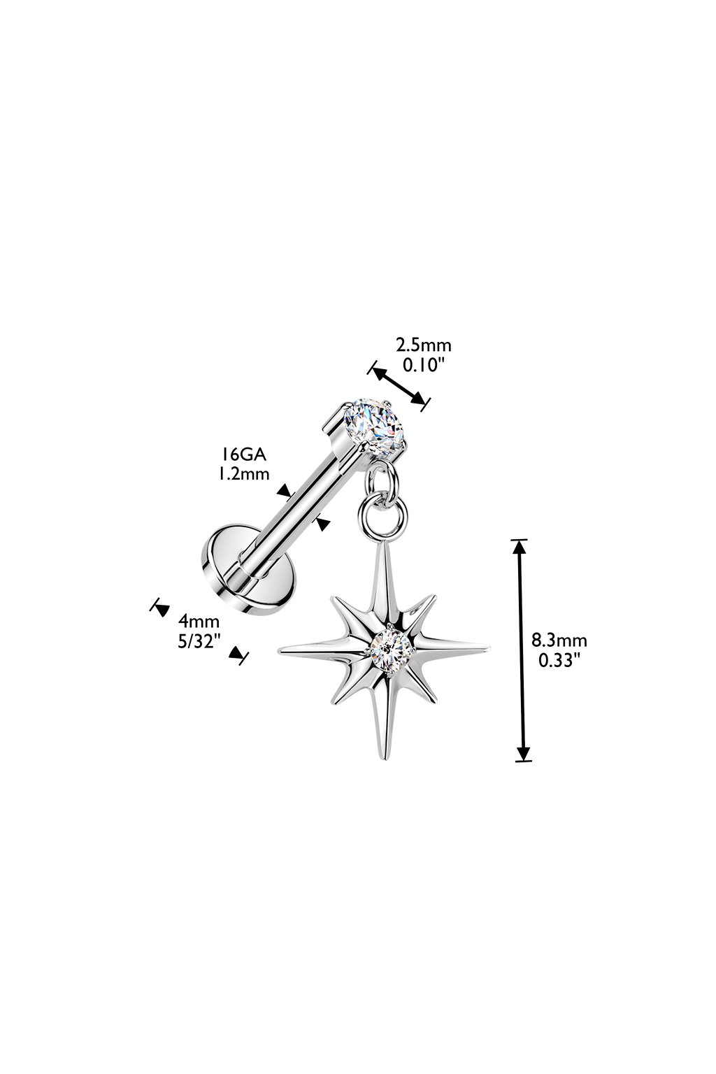 | Typ piercingu: | Labrety, Piercingové šperky pre prvý vpich |